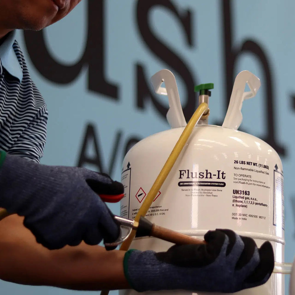 High-Pressure Cleaning - Flush-It’s two-part formulation is a proprietary blend of a high-pressure aerosol propellant and solvent. The 12-bar pressure provides a more efficient and complete cleaning of oils, acids, water, and carbon residues without leaving a trace or requiring flushing with refrigerants.